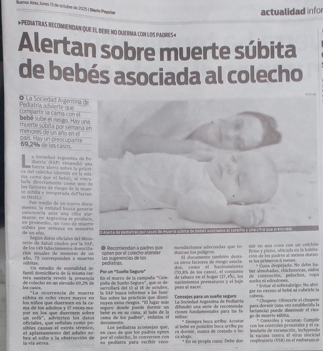 Quiero compartir una Nota de la Sociedad Argentina de Periatría, que alerta sobre la Muerte Súbita de bebes asociadas al Colecho.