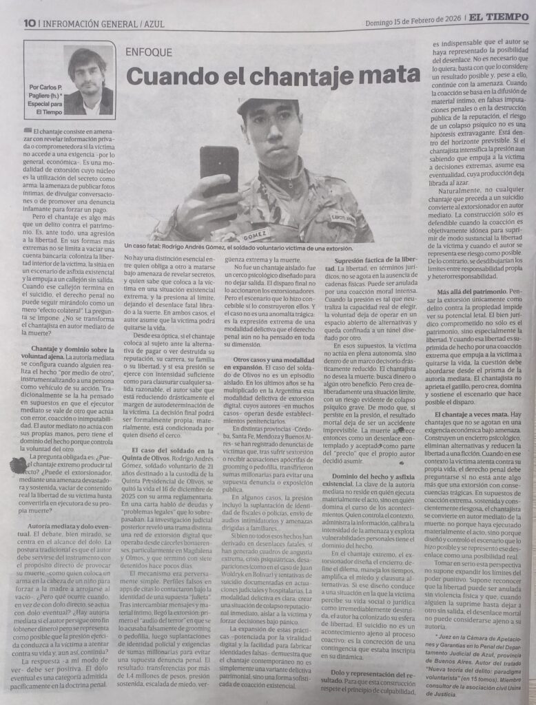 Más allá de esta atrevida analogía, trasladándolo al plano de los suicidios, y aprovechando la nota del enfoque escrito por este Señor, verdaderamente, a lo largo de mi Profesión y observando concienzudamente, es una lamentable realidad, ya sea en forma individual o de organizaciones como se refiere la nota a través del mundo carcelario, ha llegado a registrarse este caso que alude el artículo.