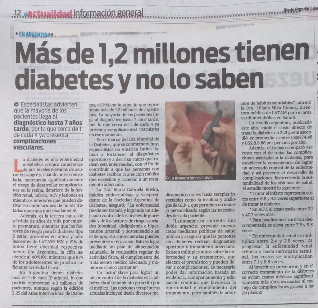 Quiero compartir fundamentalmente como Médico Clínico, lo publicado en este artículo del diario Popular, la importancia del Diagnostico temprano de Diabetes en todas sus formas. En la Nota abundan explicaciones de índole orgánicas abarcando todos los Sistema y Aparatos, pero también destaco que afecta, y va tomado de la mano, la parte Emocional, siendo ésta con manifestaciones de Ansiedad, Angustia, Depresión, directa o indirectamente, se conozca o no se conozca el Diagnóstico, porque lamentablemente es silenciosa y literalmente traicionera. Ya sea en las Diabetes insulino-dependiente o secundaria 2. Trayendo trastornos sexuales de toda índole, en especial orgánicos, por afectación de los filetes nerviosos y capilares relacionados con el Aparato Reproductor, en especial el masculino, sin desdeñar el femenino. Tiene tratamiento, aunque complejo, pero se puede atenuar la disfunción eréctil, la falta de deseo, que se acentúa en los hombres en la edad adulta, impotencia, los síntomas de la Andropausia.