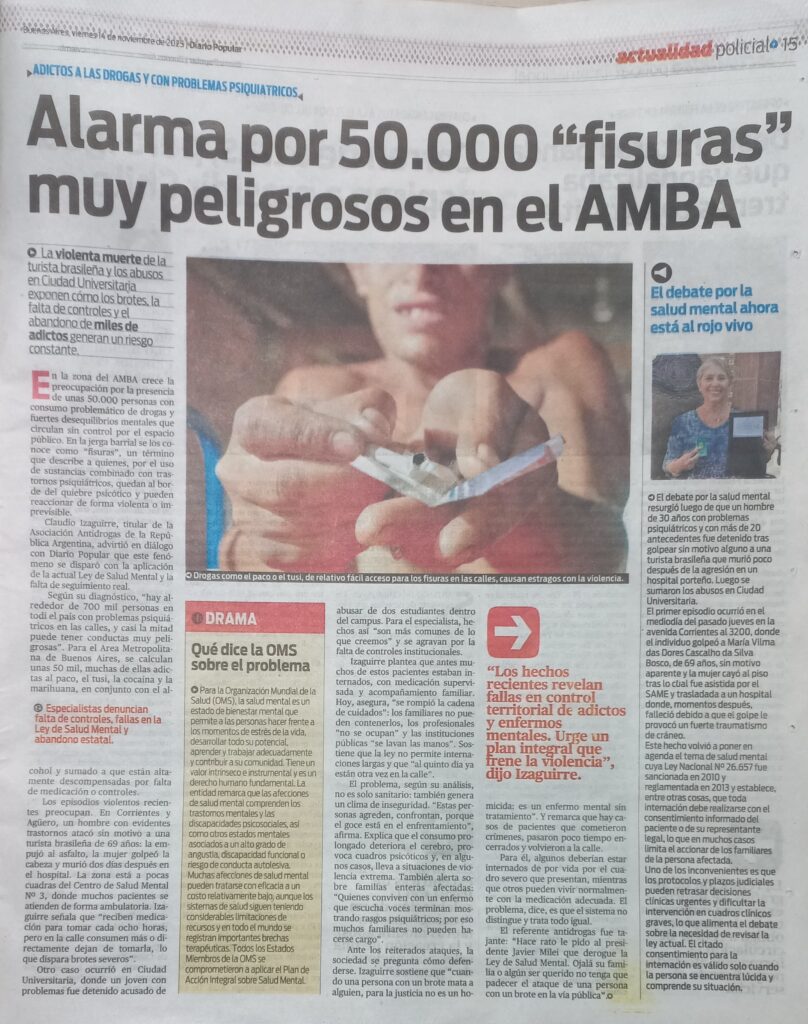 Nosotros los Profesionales en particular, y a lo que a mí me atañe, esto se debe a falencias tanto en la Sociedad, en la Familia, en la Educación, y esto me hace opinar que no solamente se soluciona con internaciones prolongadas, y lo que es peor, en opiniones de algunos Colegas, que tienen que ser “de por vida”.