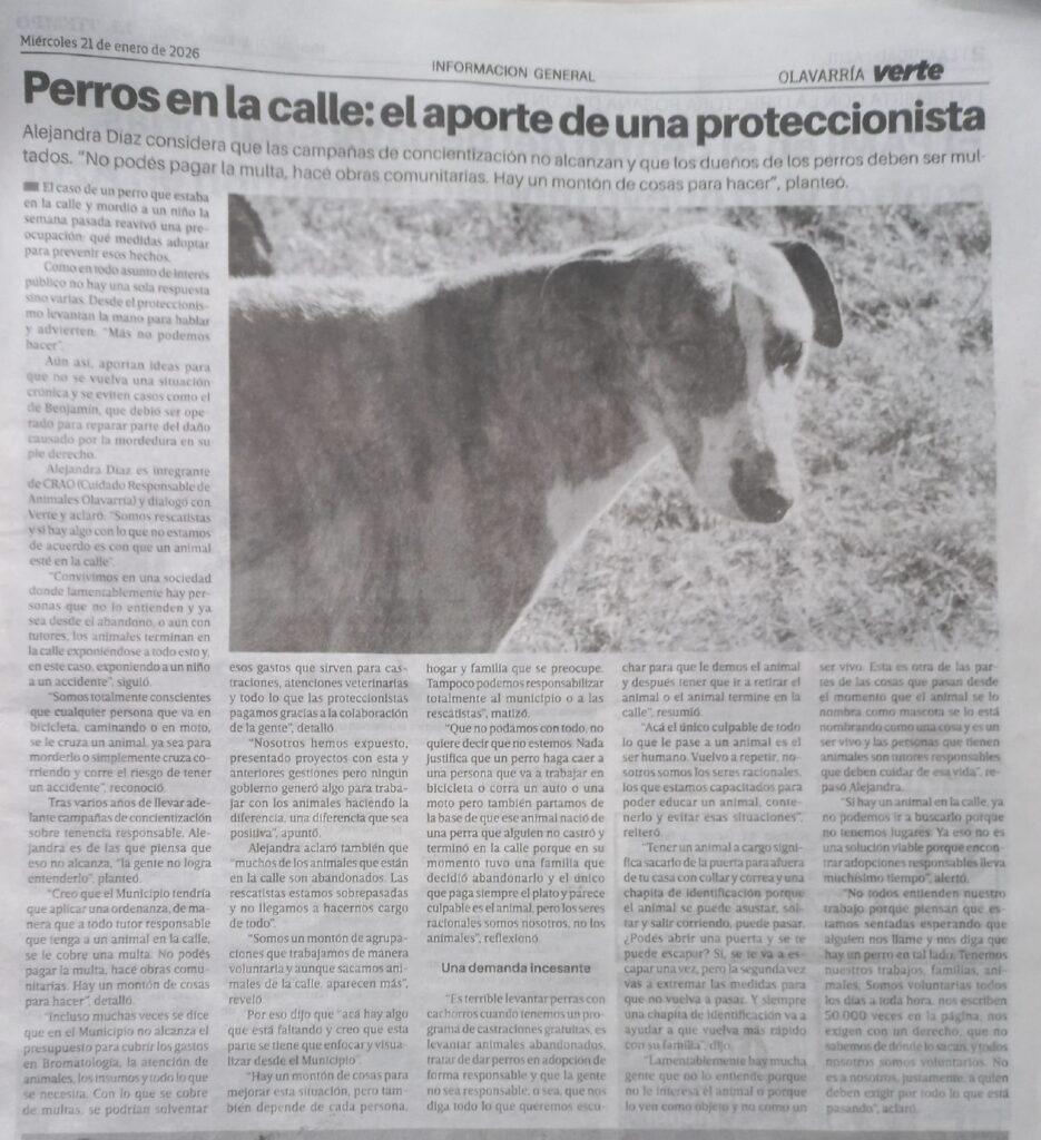 Para los que me conocen como Profesional y como Persona no les va a parecer extraño que comparta esta nota sobre ” perros en la calle”.