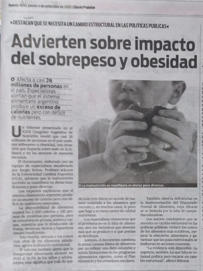 Comparto esta Nota que advierte sobre el impacto de sobrepeso y obesidad.