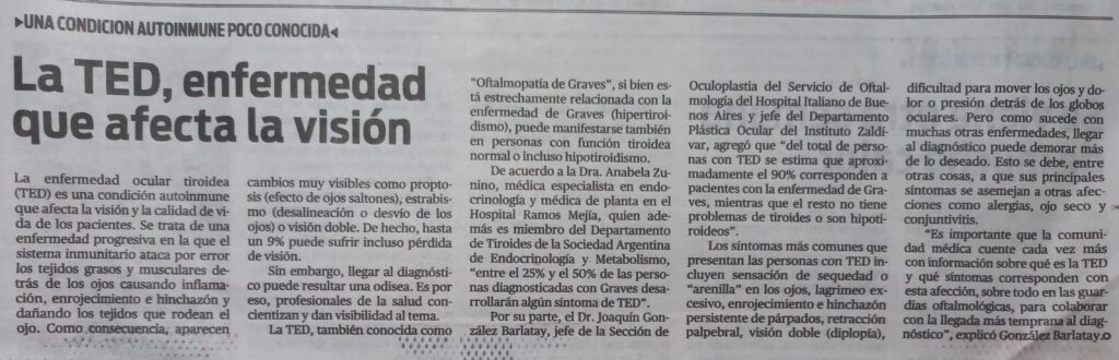 Quiero compartir este artículo médico de vital importancia, como lo es la TED, que sin saber profundamente de esta enfermedad, a lo largo de mi trabajo como Terapeuta, me doy cuenta retrospectivamente que han padecido esta lamentable enfermedad oftalmológica.