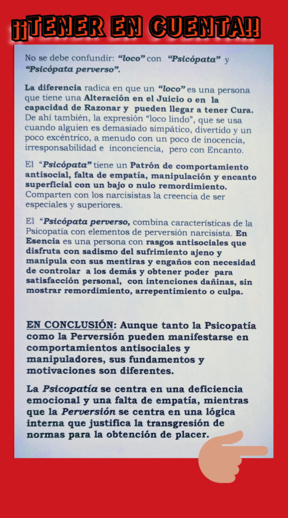 ” LOCO”, “PSICÓPATA” y “PSICÓPATA PERVERSO”.