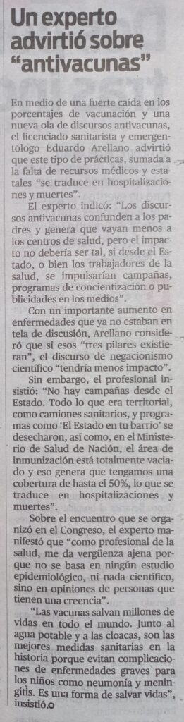 A lo manifestado en un artículo anterior, sobre la no obligatoriedad de la vacuna, quiero aportar los conceptos de un experto de esta temática, referido en una nota de Diario Popular, y realmente sigo opinando y dando una interpretación analítica: tiene que tener esta Persona o las que la promueven, fuertes componentes Homicidas de acuerdo al concepto Freudiano, para ser tan destructivos.